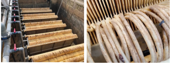 Cuando la intensidad de la aireación es baja, la fuerza de corte hidráulica generada por la aireación no es suficiente para eliminar los contaminantes en la superficie de la membrana;la aireación excesiva hará que los copos de lodo se rompan y produzcan una gran cantidad de pequeñas partículas de coloides y sustancias disueltas, lo que resultará en contaminación.Bloqueo.